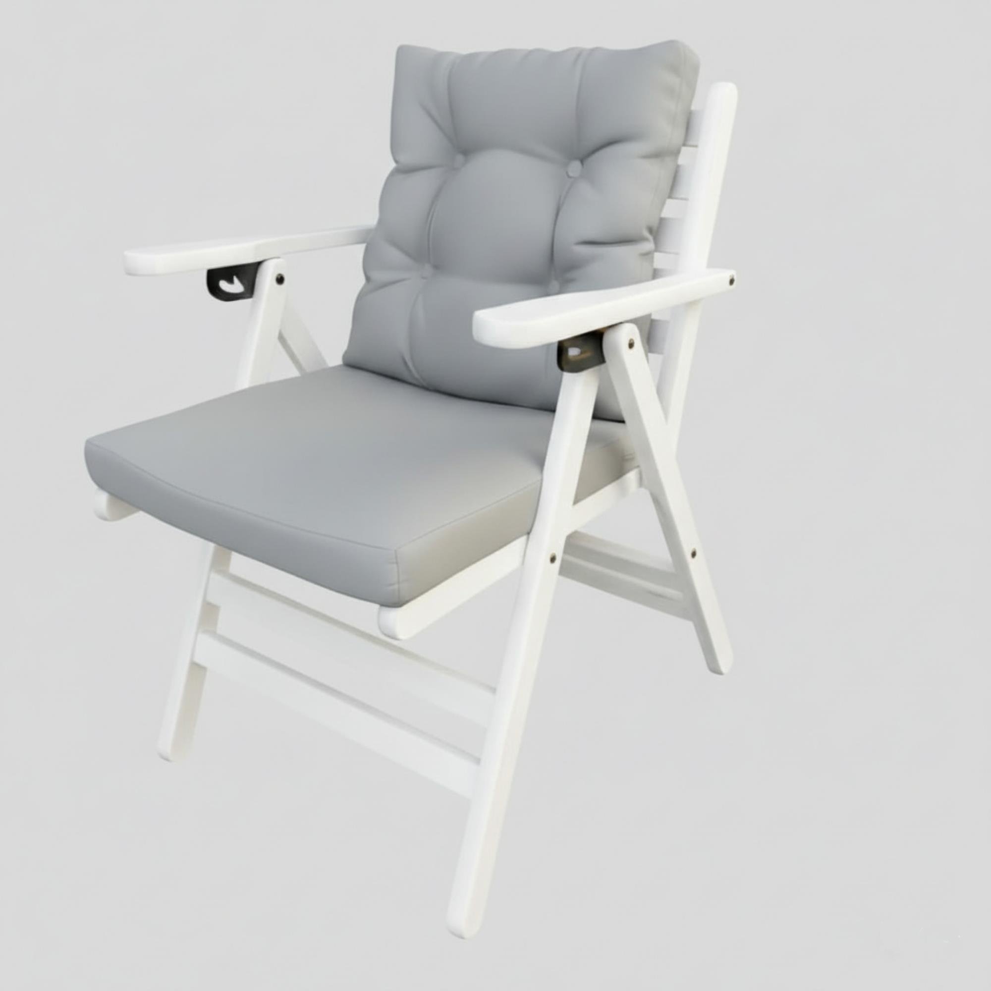 Antalya Katlanır Beyaz Ahşap Sandalyemiz masif ahşap özenle işlenerek üretildi. Zımparası, boyası, verniğiyle pırıl pırıl bir ürün. Düğmeli minderleri ile konforlu ve şık. Bahçe ve teraslarda dış mekan sandalyesi olarak kullanabileceğiniz gibi mutfak ve balkonlarınızda da kullanabilirsiniz.