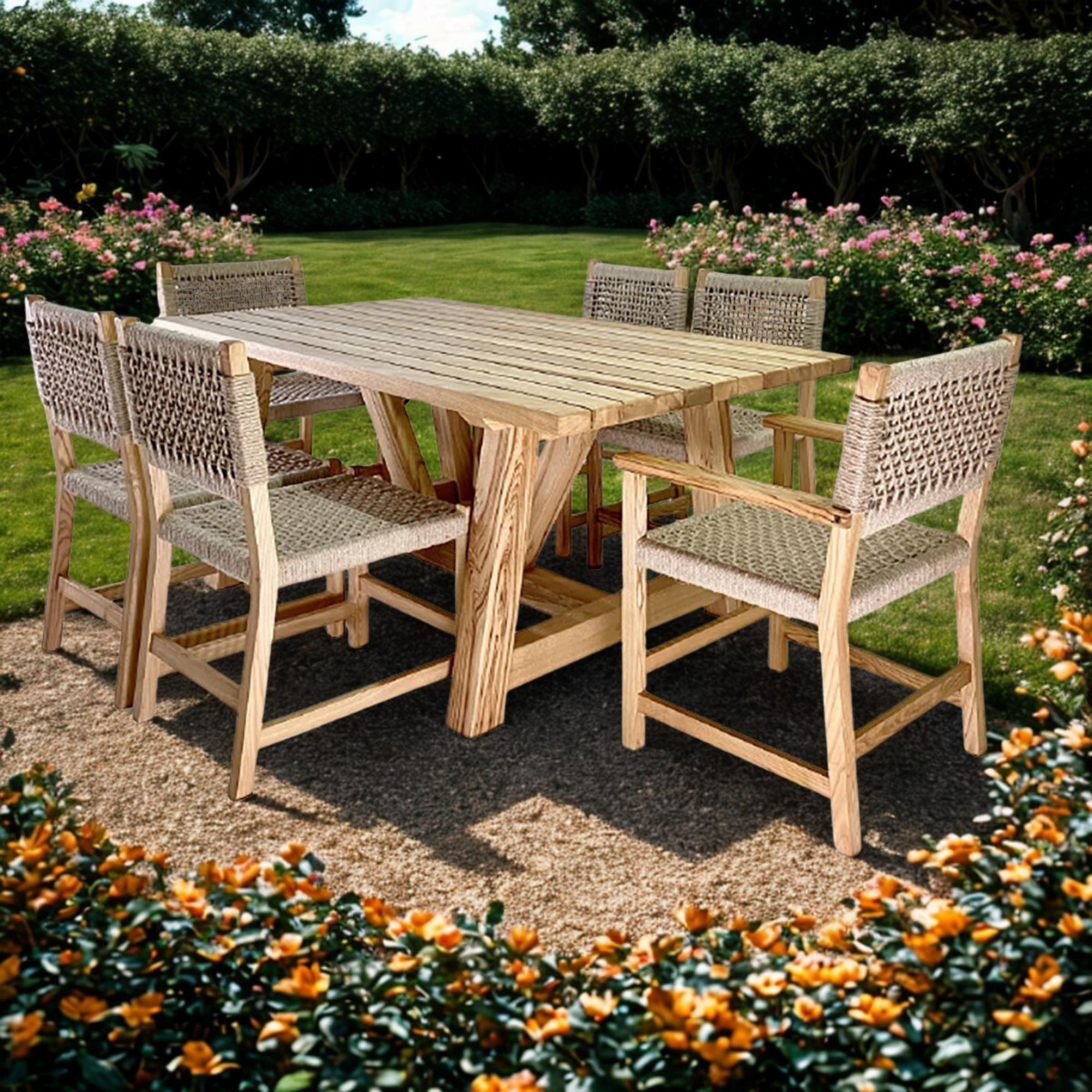 Suya mukavemeti nedeni ile tekne yapımında da kullanılan kestane ağacından üretilen setimiz nesiller boyu kullanabileceğiniz sağlamlıkta,doğal bir üründür. Elde işlenen örgü oturum ve sırt dayaması ile öne çıkan sandalyeleri, kalın iskeletli, tok masası tamamlanmıştır. Bulunduğu her mekanda göz doldurucu bir etkisi olan bu setimiz aynı zamanda kullanışlı ve uzun ömürlüdür. Hem sandalyeler hem masa benzersiz görünümü ile mekanınıza ayrı bir hava katacaktır.